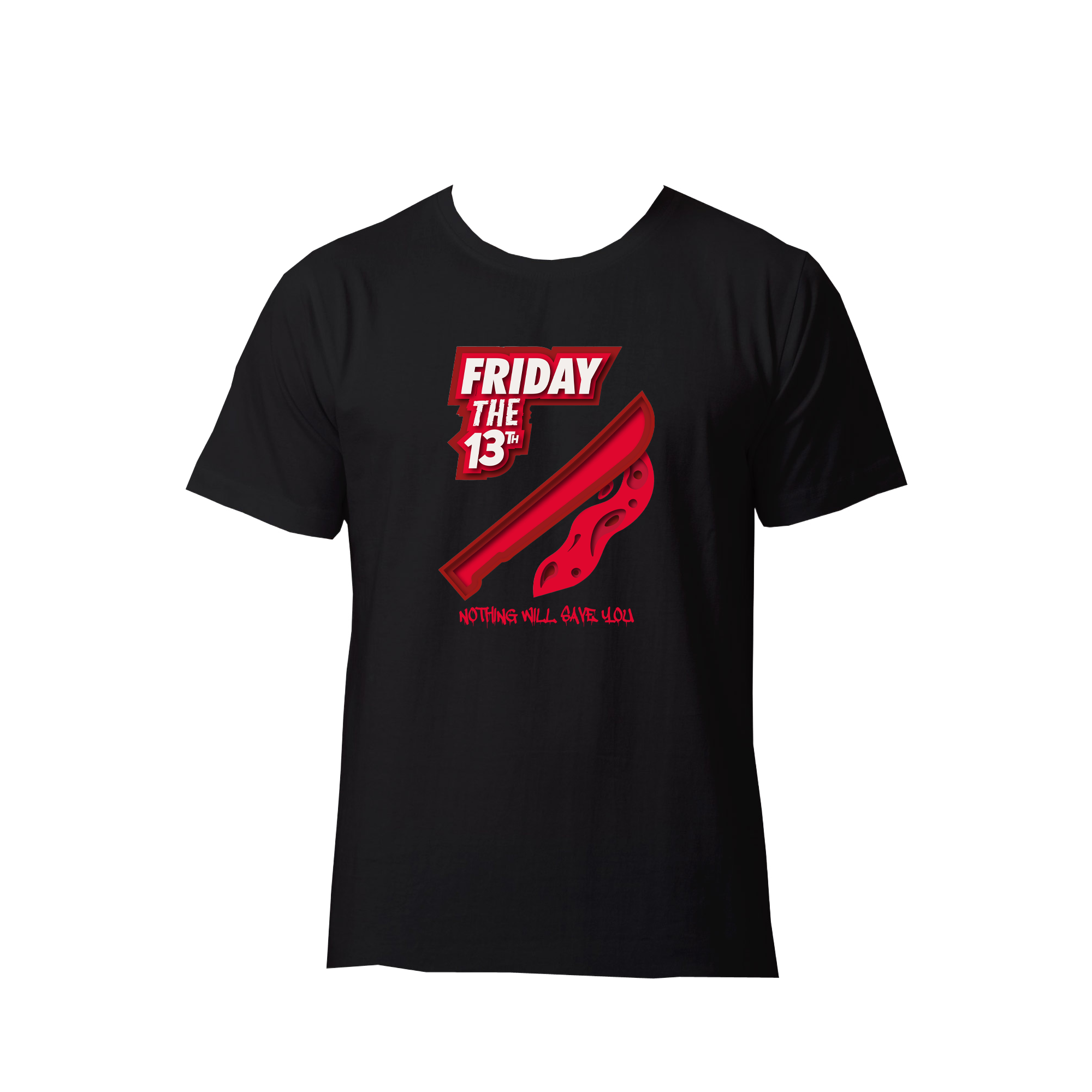 Survive the legend of Jason Voorhees with our Friday the 13th t-shirt. The pure cotton comfort might just be your lucky charm as you navigate the eerie woods of Camp Crystal Lake. Perfect for fans of classic horror and spine-chilling thrills.